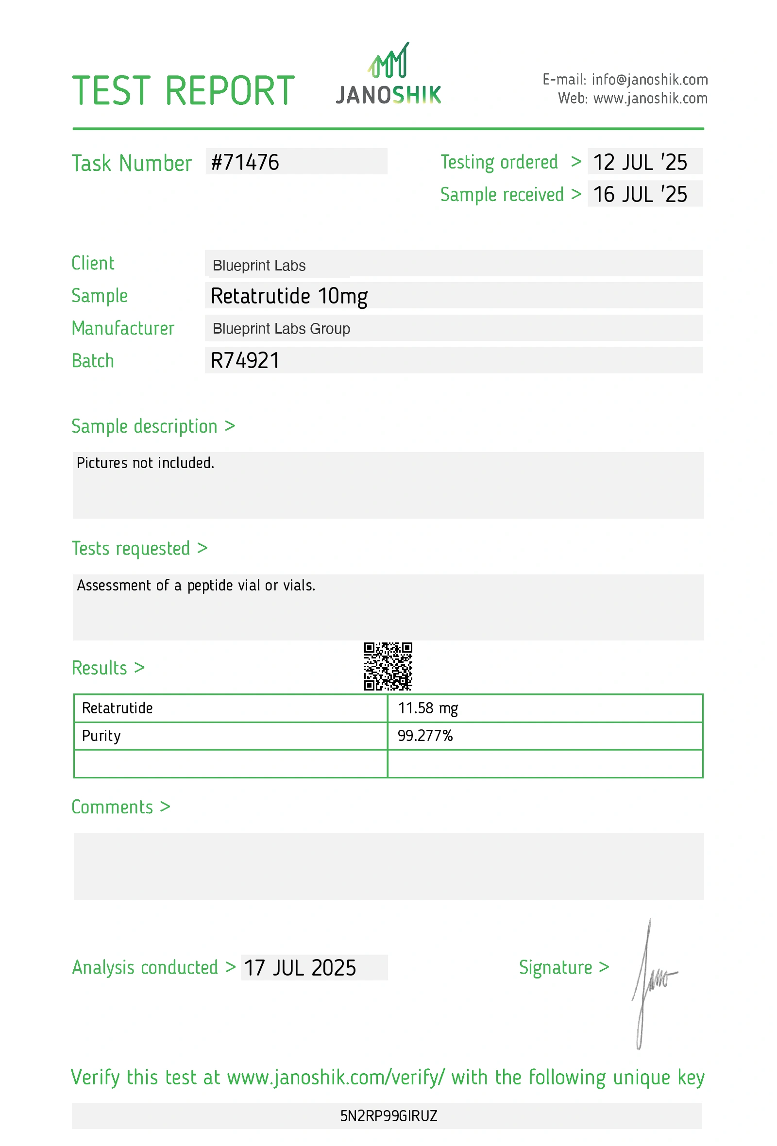 Research Use: All products offered by Blueprint Labs are intended solely for research purposes and are not for human consumption. Blueprint Labs does not provide dosing information or usage instructions for any products listed on blueprintlabsgroup.com.